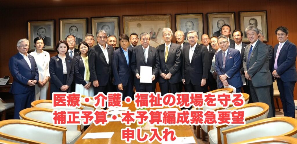 8月29日、カトレア会のメンバーで「医療・介護・福祉の現場を守る補正予算・本予算編成緊急要望」を、自民党の森山裕幹事長へ申し入れをしました。補正予算を視野に、引き続き医療・介護・福祉の現場で働く従事者の処遇改善を求めて参ります。