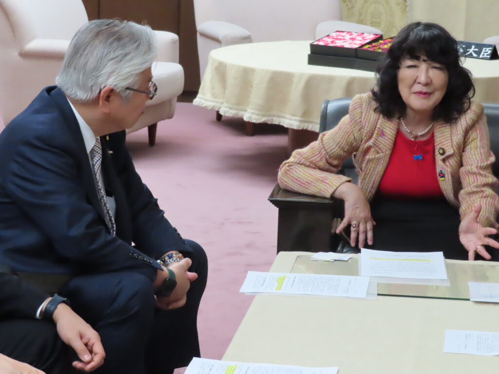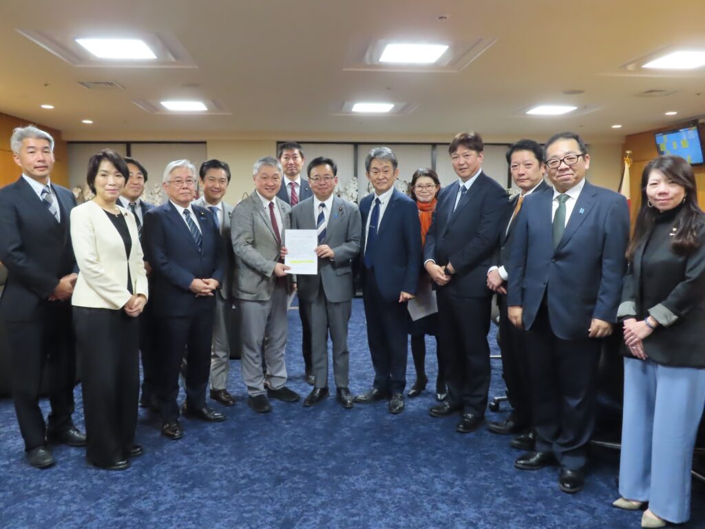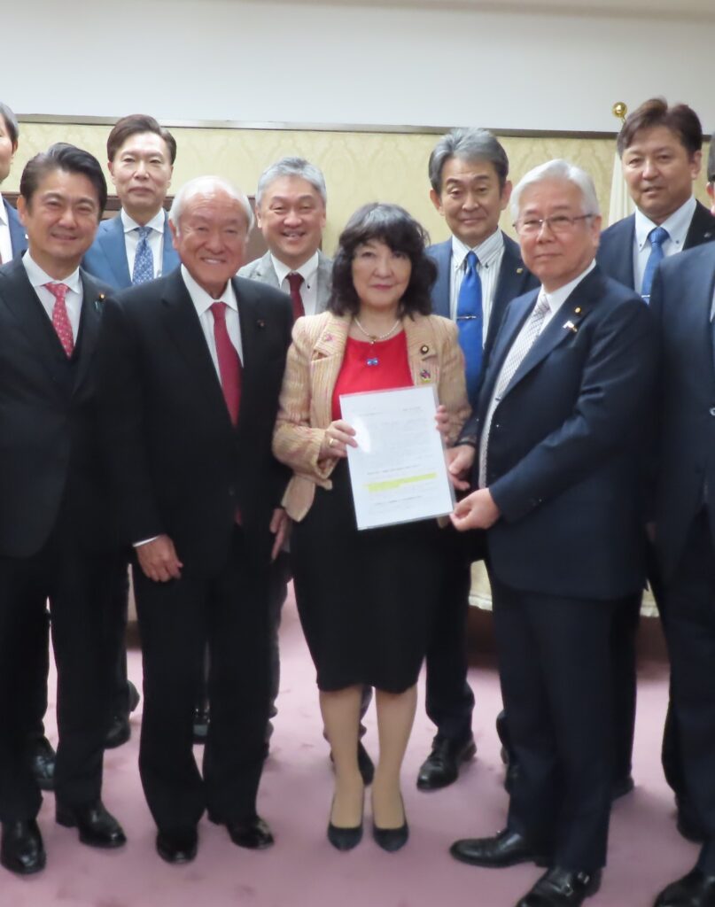 12月4日、田野瀬太道幹事長、堀内詔子副会長、山下貴司副会長、斎藤洋明幹事、国光事務局次長と共に上野賢一郎厚生労働大臣へ、また、翌12月5日には、鈴木俊一会長、堀内詔子副会長、国光あやの事務局次長と共に片山さつき財務大臣へ申し入れを行いました。日本理学療法士協会、日本作業療法士協会、日本言語聴覚士協会も同席しました。