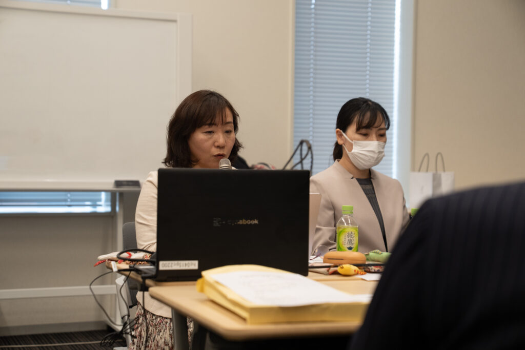 腰痛・腹直筋離開・尿漏れ等の妊娠・出産に伴う身体的トラブルを、多くの母親達が抱え込んでしまっている現状が実例を挙げて紹介されました。産婦健診で母親自身が自分の身体の状態にも目を向け、きちんとケアが受けられるよう、母子手帳に母体に関するチェック項目を記載することについての要望も上がりました。