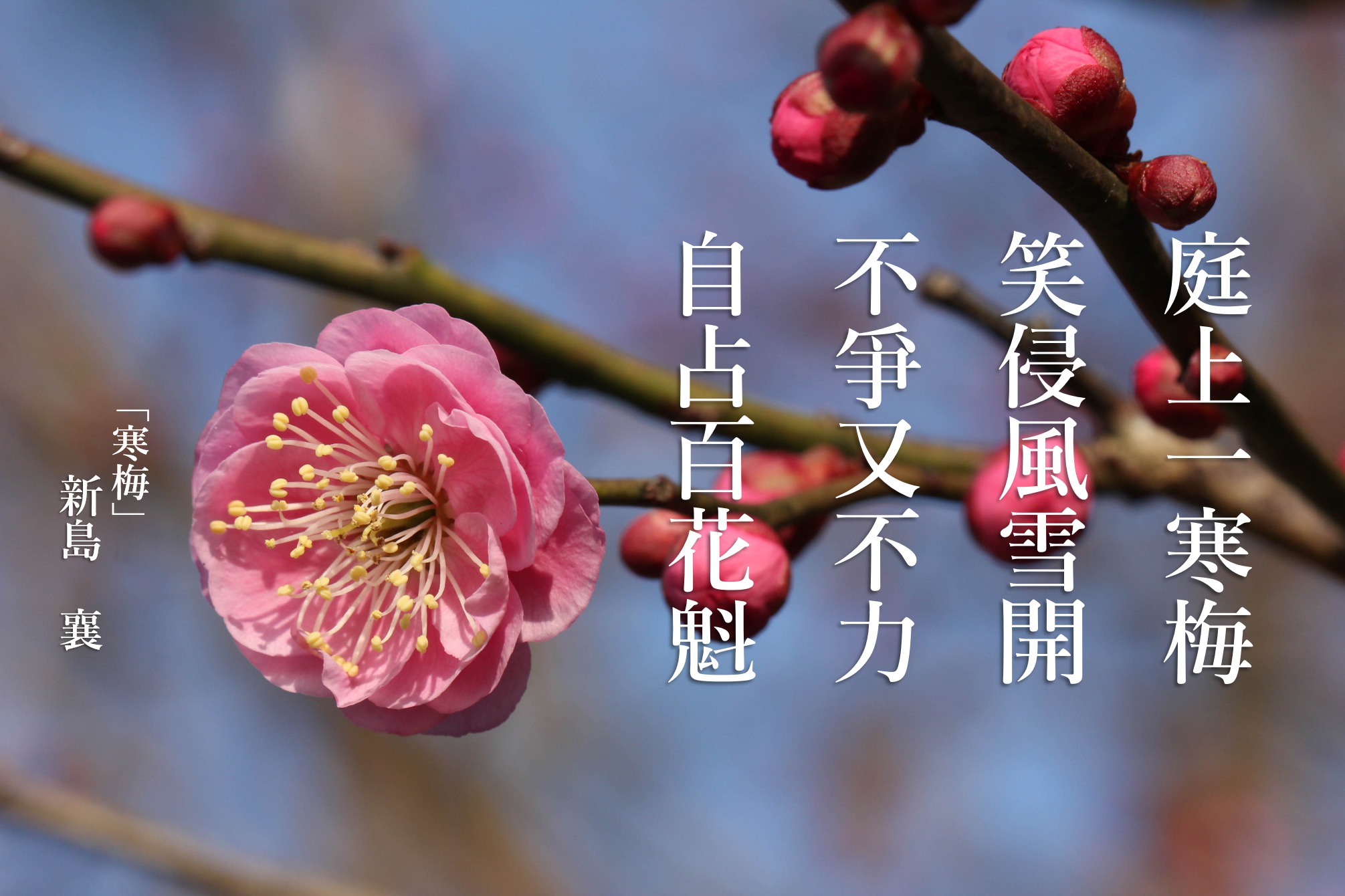 写真は、毎年冷たい風の中に凜として立つ梅の木を見る度に思い出す「寒梅」という漢詩(新島襄作)